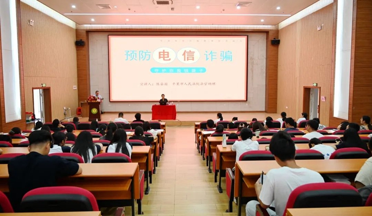 講座中,陳姿羽法官助理通過身邊發(fā)生的真實案例,剖析了詐騙分子慣用的騙術(shù)手段和伎倆,提醒同學(xué)們要加強自我保護意識,不輕信、不透露、不轉(zhuǎn)賬,遠離電信詐騙,樹立正確的價值觀和金錢觀,提醒學(xué)生們要將防范電信詐騙知識牢記心中。