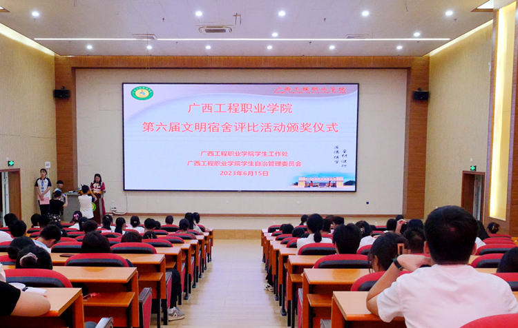 為了在校內(nèi)營(yíng)造健康、整潔、和諧、安全的宿舍氛圍,促進(jìn)宿舍同學(xué)之間團(tuán)結(jié)、友愛、互幫、互助,共同創(chuàng)造文明和諧的校園,2023年6月15日,我校在圖文信息大樓一樓報(bào)告廳舉行第六屆文明宿舍評(píng)比活動(dòng)頒獎(jiǎng)儀式。
