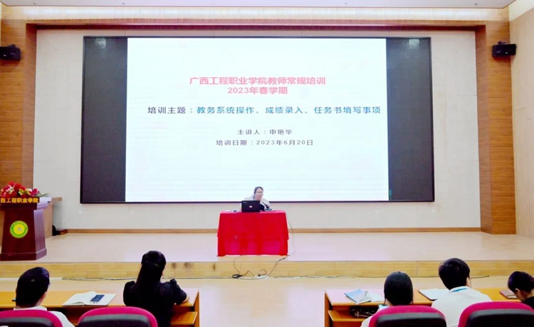 為加強(qiáng)期末考試管理,嚴(yán)肅考風(fēng)考紀(jì),做好期末考試考務(wù)工作及更好地掌握教務(wù)系統(tǒng)操作,提高教師的教育教學(xué)工作效率,6月20日下午,學(xué)校在圖文信息大樓一樓學(xué)術(shù)報告廳舉行2023年春季學(xué)期教師常規(guī)培訓(xùn)的第十二期、第十三期,其中,教務(wù)處科長覃海梅作題為《期末考試考務(wù)工作》的第十二期專題培訓(xùn),教務(wù)處申艷華老師作題為《教務(wù)系統(tǒng)操作、成績錄入、任務(wù)書填寫事項》的第十三期專題培訓(xùn)。