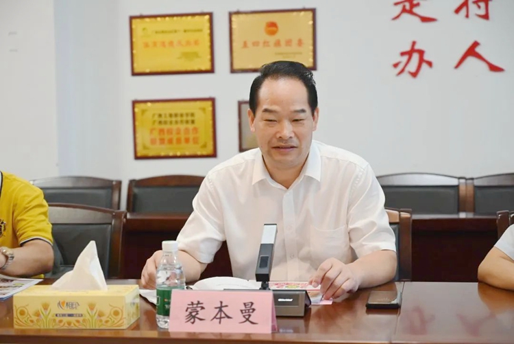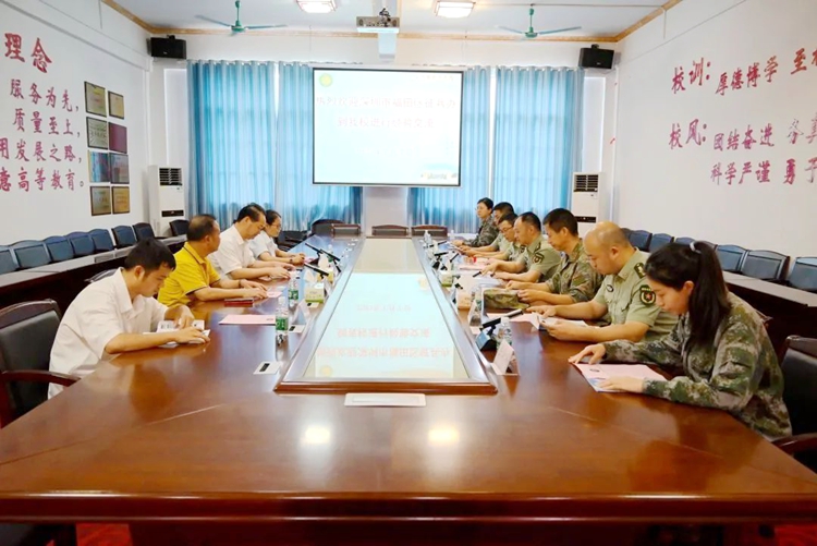 為進(jìn)一步加強學(xué)生的國防教育,培養(yǎng)學(xué)生熱愛祖國、熱愛人民軍隊的真摯情感,2023年7月7日,深圳市福田區(qū)人武部政委趙華、平果市人武部政委汪曉明一行7人來我校調(diào)研指導(dǎo)征兵工作。學(xué)校黨委書記蒙本曼、董事長李益、學(xué)生工作處副處長李麗詩、征兵辦公室負(fù)責(zé)人陳國昇陪同調(diào)研并參加征兵工作經(jīng)驗交流會。交流會由學(xué)生工作處副處長李麗詩主持。