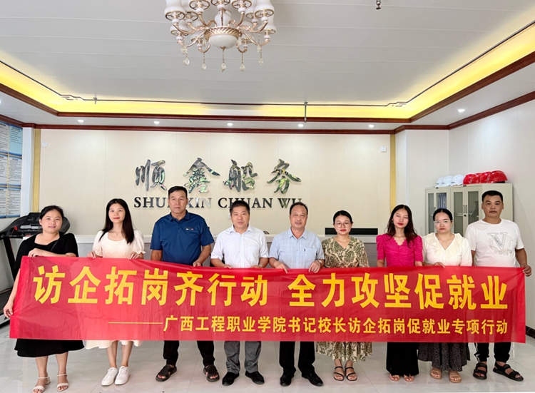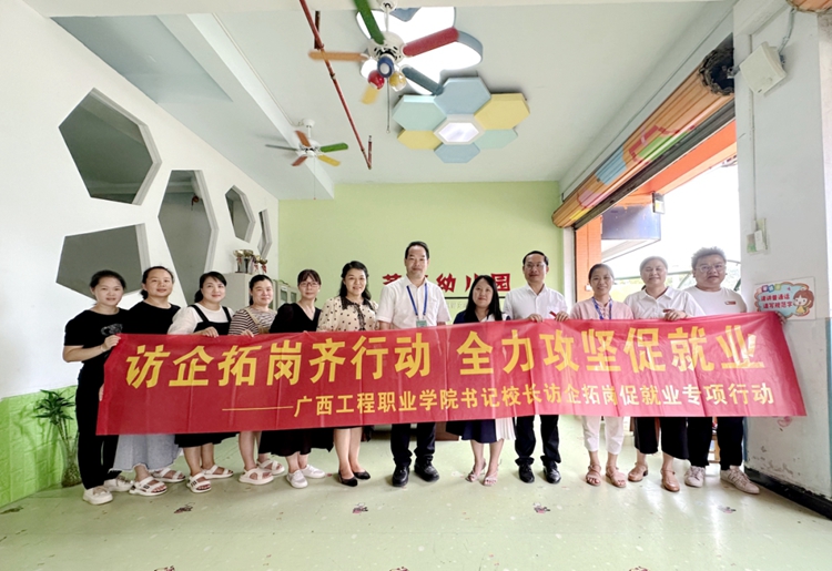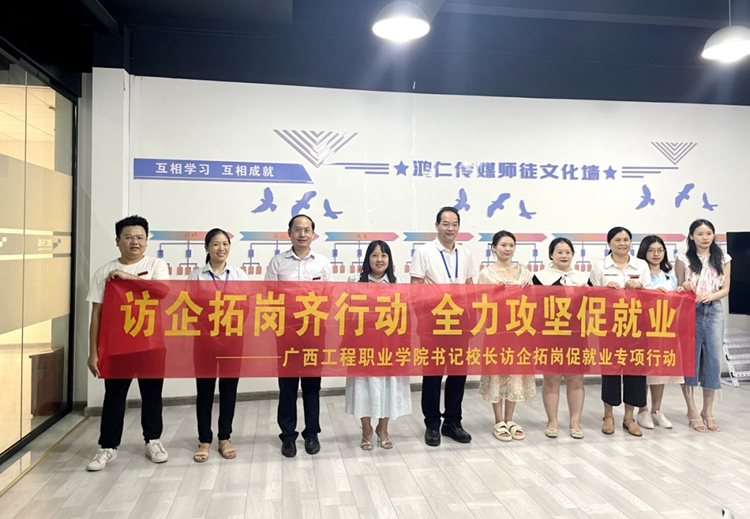 為深入開(kāi)展高校書記校長(zhǎng)訪企拓崗促就業(yè)專項(xiàng)行動(dòng),對(duì)接企業(yè)用人需求,拓寬畢業(yè)生就業(yè)渠道和資源,全力促進(jìn)畢業(yè)生更加充分更高質(zhì)量就業(yè),服務(wù)企業(yè)發(fā)展,從2023年4月到7月,廣西工程職業(yè)學(xué)院董事長(zhǎng)李益、副董事長(zhǎng)林艷及黨委書記、督導(dǎo)專員蒙本曼,校長(zhǎng)羅艷妮等帶隊(duì)深入兩廣80多家企業(yè)和9所幼兒園進(jìn)行訪企拓崗促就業(yè)行動(dòng)。學(xué)校黨政領(lǐng)導(dǎo)班子成員、中層干部參加了此次專項(xiàng)行動(dòng)。