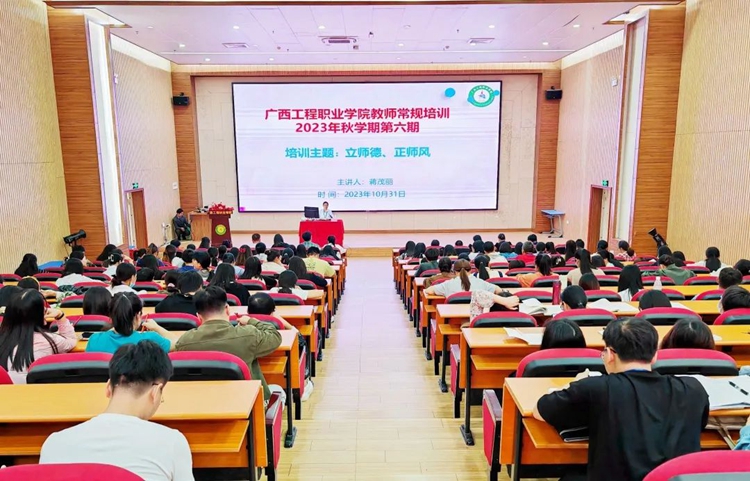教師是立校之本,師德是教育之魂。為進一步加強師德師風(fēng)建設(shè),落實立德樹人根本任務(wù),全面提升教師隊伍素質(zhì),規(guī)范從教行為,樹立良好教師形象,2023年10月31日下午,學(xué)校在圖文信息大樓報告廳舉行2023年秋季學(xué)期第六期教師常規(guī)培訓(xùn)之師德師風(fēng)專題培訓(xùn),學(xué)校副校長蔣茂麗作題為《立師德 正師風(fēng)》的專題培訓(xùn),全體教師參加了培訓(xùn)。