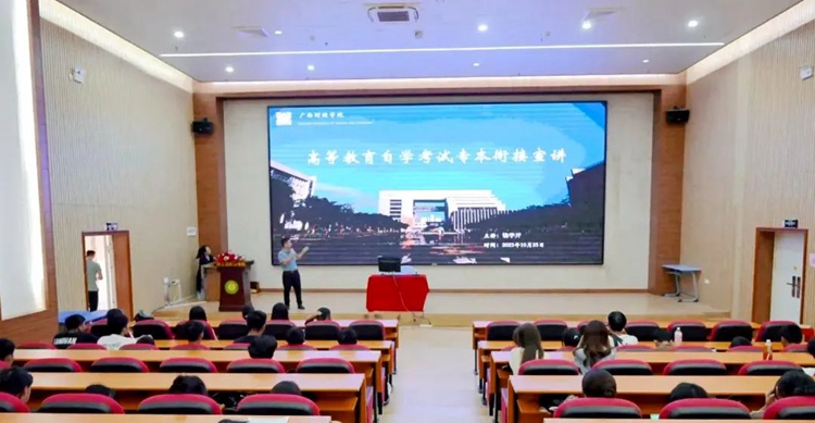 交流會后,廣西財經(jīng)學(xué)院繼續(xù)教育學(xué)院饒學(xué)開副院長、王曉陽副主任還分別為學(xué)校各二級學(xué)院學(xué)生代表進(jìn)行了專本銜接報讀宣講。