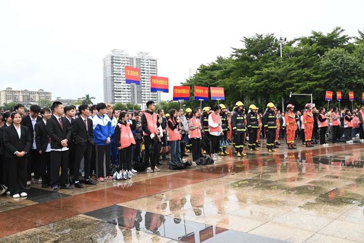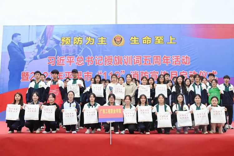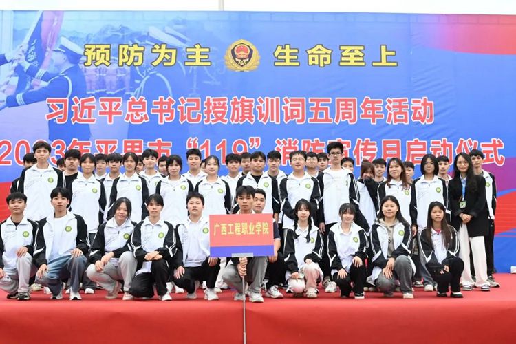 廣西工程職業(yè)學(xué)院保衛(wèi)處王冬冬副處長(zhǎng)帶隊(duì)400名師生代表參加了此次消防宣傳月啟動(dòng)儀式。