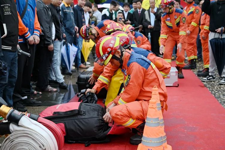 在沉浸式體驗(yàn)活動(dòng)中,參與者可真實(shí)體驗(yàn)消防員或應(yīng)急隊(duì)員角色,穿上專業(yè)救援服,佩戴空氣呼吸器,迅速發(fā)現(xiàn)事故泄漏源并排除安全隱患,然后穿越障礙,利用專業(yè)救援裝備對(duì)“受困傷員”實(shí)施緊急救援。