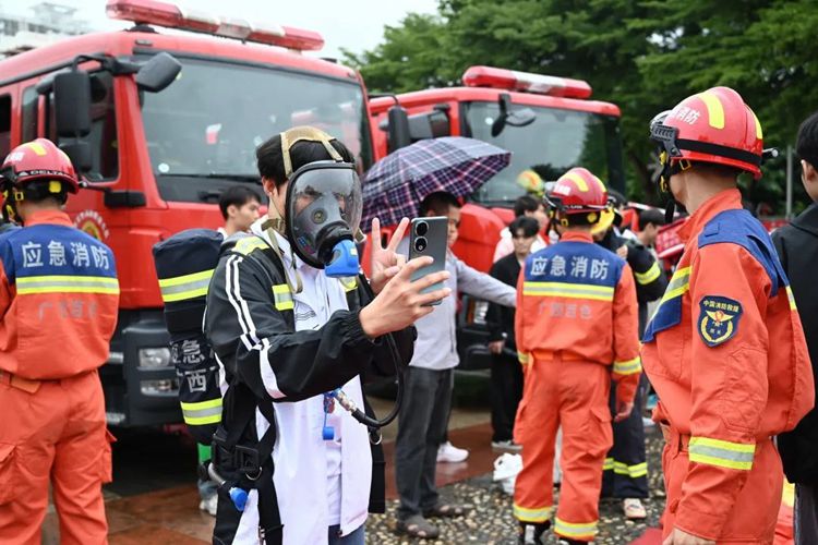啟動(dòng)儀式后,工程學(xué)子們認(rèn)真參觀了各類消防知識(shí)宣傳展,并沉浸式體驗(yàn)了模擬煙霧逃生、身著消防救援服、佩戴空氣呼吸器、體驗(yàn)消防器材使用等,進(jìn)一步提升了消防安全意識(shí)和自救自護(hù)能力。