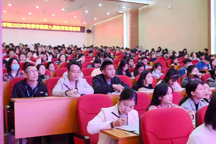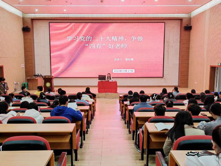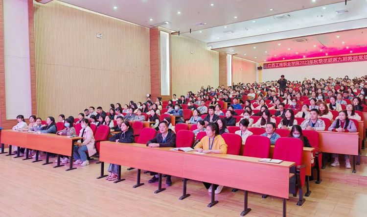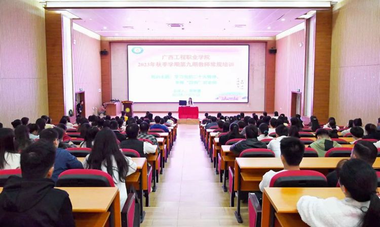 偉大的教育家雅斯貝爾斯曾說:“教育的本質(zhì)是一棵樹搖動另一棵樹,一朵云推動另一朵云,一個靈魂喚醒另一個靈魂。”為深入學(xué)習(xí)宣傳貫徹黨的二十大精神,加強學(xué)校師德師風(fēng)建設(shè),打造高素質(zhì)教師團隊,引導(dǎo)廣大教師做“有理想信念、有道德情操、有扎實學(xué)識、有仁愛之心”的“四有”好老師,2023年11月21日,廣西工程職業(yè)學(xué)院舉行2023年秋季學(xué)期第九期教師常規(guī)培訓(xùn)會,黨委副書記黃秋霞作“學(xué)習(xí)黨的二十大精神,爭做‘四有’好老師”主題培訓(xùn)。全體教師參加了培訓(xùn)會。
