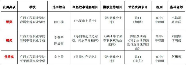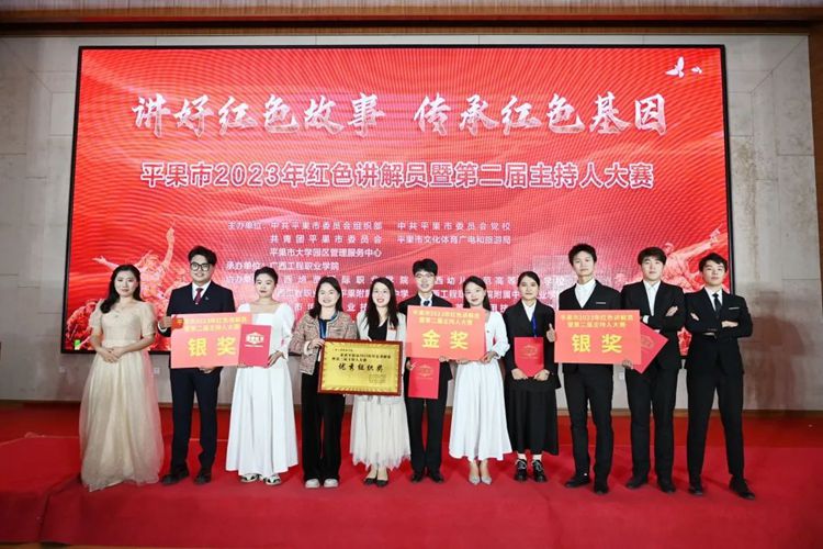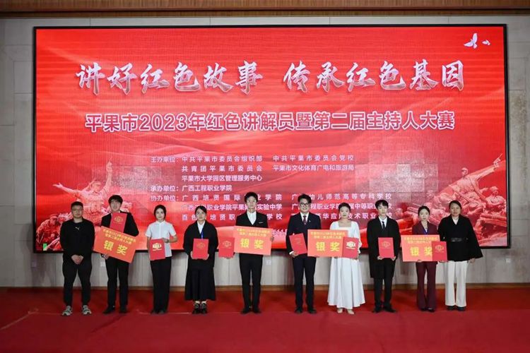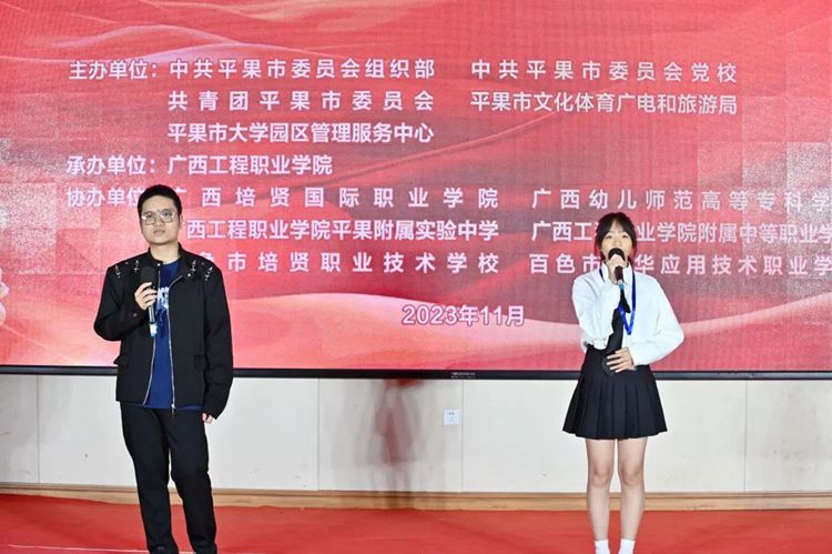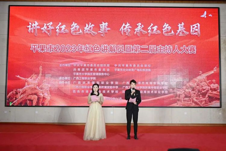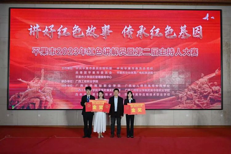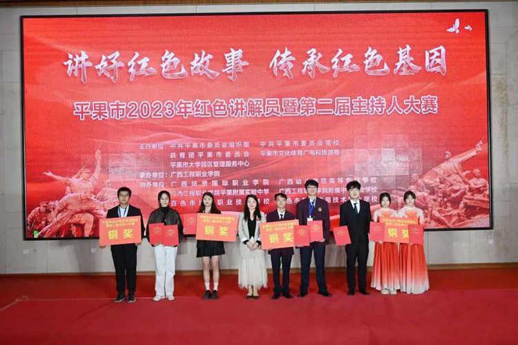 11月18日,由中共平果市委員會(huì)組織部、中共平果市委員會(huì)黨校、共青團(tuán)平果市委員會(huì)、平果市文化體育廣電和旅游局、平果市大學(xué)園區(qū)管理服務(wù)中心主辦,廣西工程職業(yè)學(xué)院承辦的平果市2023年紅色講解員暨第二屆主持人大賽在學(xué)校圖文信息大樓一樓學(xué)術(shù)報(bào)告廳舉行,學(xué)校參賽選手在高職組比賽中榮獲金獎(jiǎng)一項(xiàng),銀獎(jiǎng)兩項(xiàng),學(xué)校榮獲優(yōu)秀組織獎(jiǎng)。