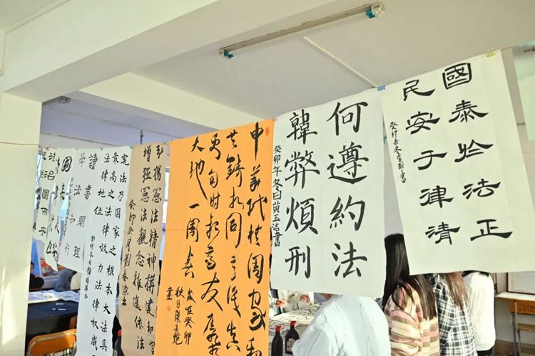 同學(xué)們通過書法作品,讓法律知識變得通俗化,展現(xiàn)了法治思想,弘揚了憲法精神
