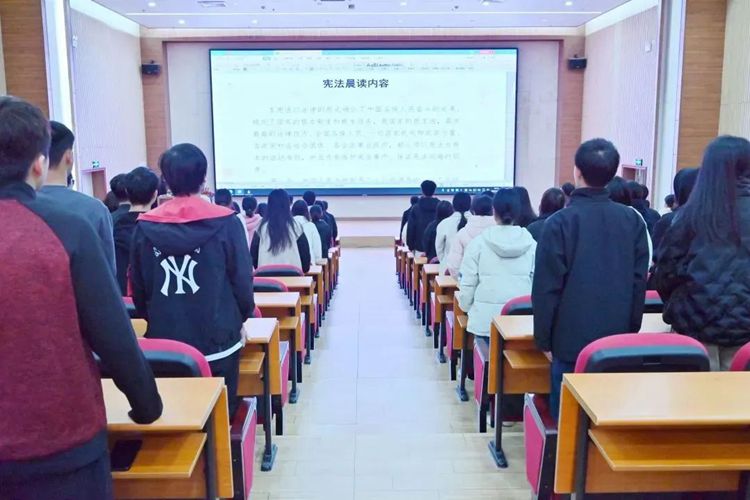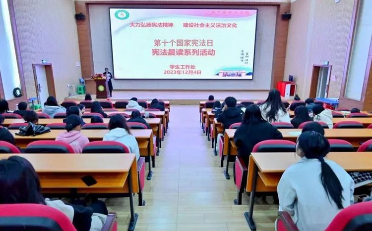2023年12月4日是第10個國家憲法日,教育部組織開展2023年國家憲法日教育系統(tǒng)“憲法晨讀”活動。為進一步弘揚憲法精神,維護憲法權(quán)威,增強學(xué)生的法治意識和遵紀(jì)守法的自覺性,營造尊崇憲法的濃厚氛圍,學(xué)校在圖文信息大樓報告廳組織師生集中收看、同步參與國家憲法日“憲法晨讀”活動。