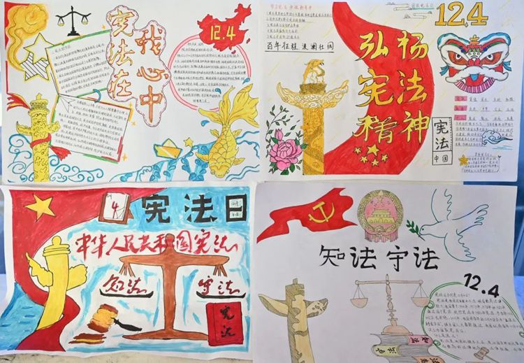 同學(xué)們用五彩斑斕的畫筆展現(xiàn)知法、懂法、守法的校園氛圍,感受法治之美,傳播法治之聲,共同推進法治文化建設(shè)。