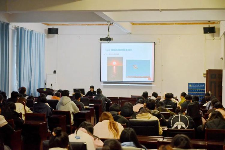 在攝影技巧培訓方面,黃老師指出了新聞攝影的特點,即通過圖像來傳達信息和引起觀眾的情感共鳴,一張好的新聞照片應該具備真實、立體和全面的特點,能夠生動地展現事物的本質和背后的故事。接著,她主要從攝影的取景構圖、光影色彩等方面詳細介紹了攝影的基礎知識,并結合學校的新聞攝影,以具體實例,詳細介紹了會議類、文體類活動的攝影技巧和要求。鼓勵在場師生勇于嘗試,積極尋找有趣的場景和故事,力求通過鏡頭捕捉真實的瞬間,多拍多練,不斷積累經驗,不斷提升攝影水平,推出更多有態(tài)度、有溫度、有厚度的作品。
