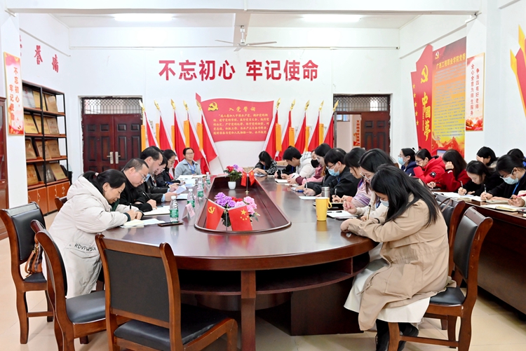 會上,蒙本曼書記結(jié)合學(xué)習(xí)內(nèi)容,作《牢記初心使命,實現(xiàn)高質(zhì)量發(fā)展》主題發(fā)言。他指出,要認真學(xué)習(xí),學(xué)以致用,把專題學(xué)習(xí)精神落實到思政工作實際中,要狠抓意識形態(tài)和師德師風(fēng)建設(shè),強化責(zé)任擔當,確保教書育人質(zhì)量,以高質(zhì)量的教師思政工作和學(xué)生一站式實踐打造和創(chuàng)建安穩(wěn)的校園氛圍;要不忘初心、牢記使命,切實發(fā)揮高校思想政治工作對全校師生員工的政治引領(lǐng)作用,為建設(shè)壯美廣西、實現(xiàn)中華民族偉大復(fù)興的中國夢貢獻“思政人”的力量;要以習(xí)近平文化思想為指引,堅定文化自信,積極弘揚中華民族優(yōu)秀傳統(tǒng)文化,在鑄造“非遺廣西”文化名片方面貢獻高校青春力量。他要求領(lǐng)導(dǎo)干部、教師們要號召青年學(xué)生堅定理想信念,在學(xué)習(xí)貫徹習(xí)近平新時代中國特色社會主義思想中把牢青春航向,在國家發(fā)展實踐中展現(xiàn)青春作為,在應(yīng)對重大奉獻中展現(xiàn)青春風(fēng)貌,努力在青春的賽道上跑出最好成績,努力成為時代的創(chuàng)新者、奉獻者和引領(lǐng)者。