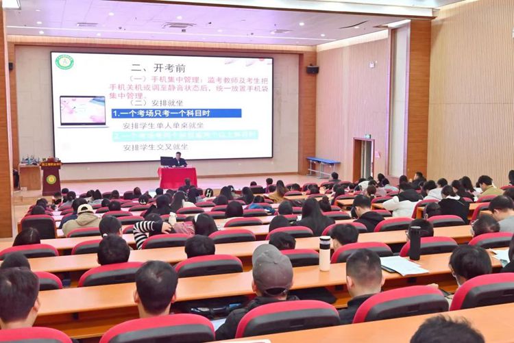 為切實做好期末考試各項工作,規(guī)范考試組織管理,嚴肅考試紀律,提高教師在教育教學工作中的效率,2024年1月9日,學校在圖文信息大樓一樓學術(shù)報告廳開展期末考試考務工作專題培訓。此次培訓為學校2023年秋季學期第十一期教師常規(guī)培訓。
