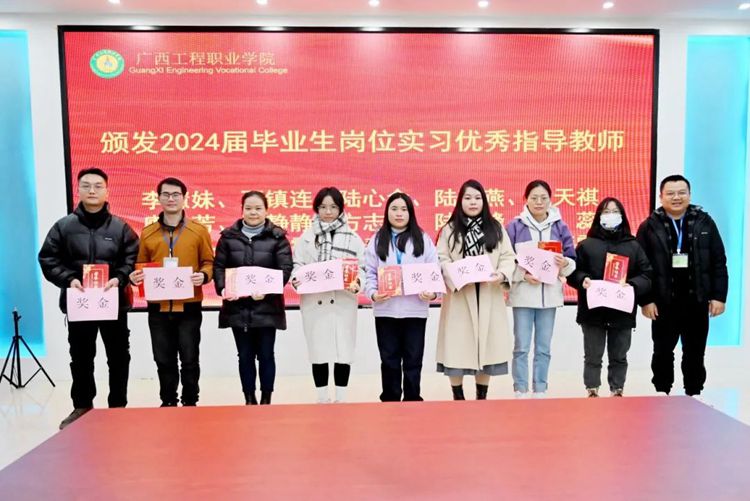 招生就業(yè)處副處長岑易精、陳麗燕為2024屆畢業(yè)生崗位實(shí)習(xí)工作優(yōu)秀指導(dǎo)教師頒發(fā)榮譽(yù)證書和獎(jiǎng)金