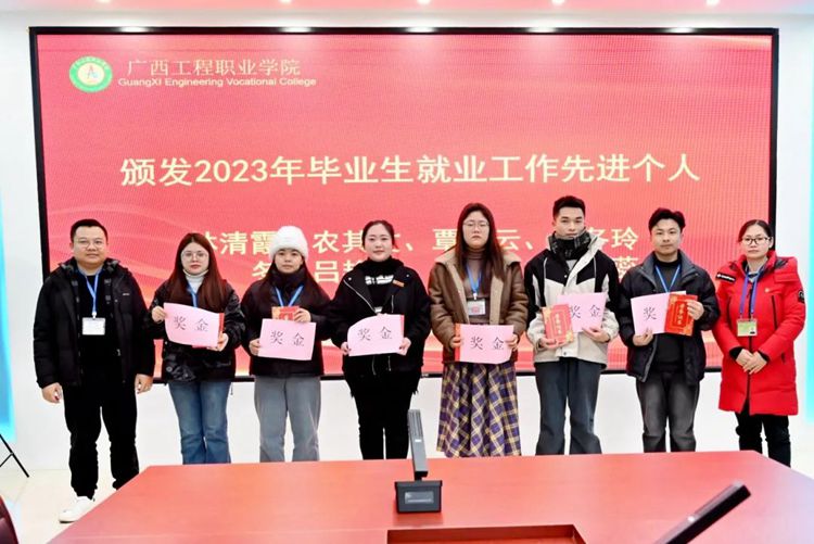 招生就業(yè)處副處長岑易精、陳麗燕為2023年畢業(yè)生就業(yè)創(chuàng)業(yè)工作先進(jìn)個(gè)人頒發(fā)榮譽(yù)證書和獎(jiǎng)金