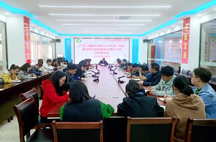 2024年3月6日下午,學校黨委在圖書館一樓大數(shù)據中心,組織召開2024年第一季度意識形態(tài)和校園安全穩(wěn)定工作分析研判會,黨委書記、督導專員蒙本曼,黨委副書記黃秋霞,黨委委員、宣傳部部長黃麗娟,各黨組織書記、副書記,黨委宣傳部全體成員、各部門負責人、馬克思主義學院全體教師參加會議。會議由黨委副書記黃秋霞主持。
