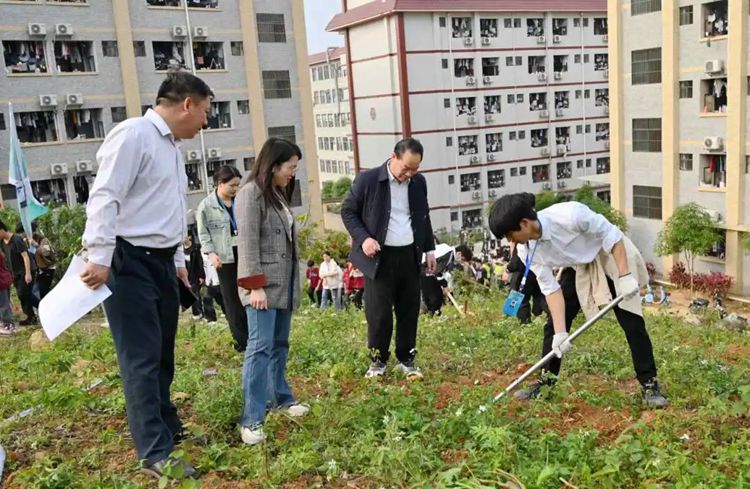 黨委書記、督導(dǎo)專員蒙本曼,黨委副書記黃秋霞等校領(lǐng)導(dǎo)帶領(lǐng)師生共同行動,開展植樹活動,為校園增添新綠,為生態(tài)文明建設(shè)貢獻自己的力量。