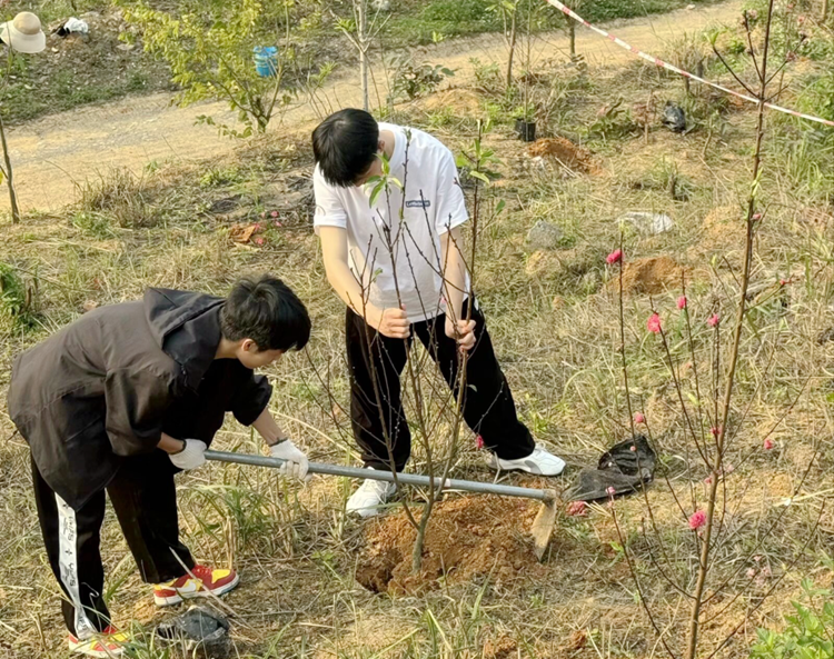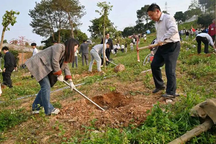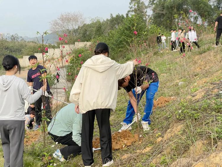 大家用心栽植,讓每一株樹苗在沃土中扎下深厚的根基,輕輕搖曳在和風(fēng)中,充滿勃勃的生機。整個場景生動展示了廣工程院學(xué)子團結(jié)協(xié)作的力量以及他們積極參與環(huán)保實踐的精神。