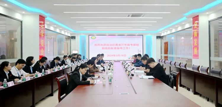 3月18日,由廣西水利電力職業(yè)學(xué)院副校長(zhǎng)周濤為組長(zhǎng)的自治區(qū)教育廳高校年檢專(zhuān)家組一行6人到我校開(kāi)展2023年度年檢實(shí)地核查工作,全面檢查指導(dǎo)學(xué)校各項(xiàng)工作。