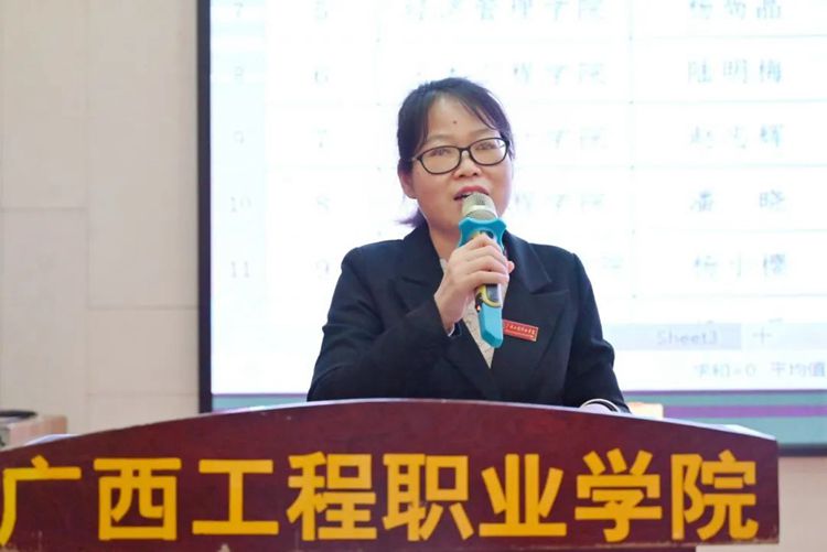 黨委副書記黃秋霞為獲得大賽一等獎(jiǎng)的老師頒獎(jiǎng)