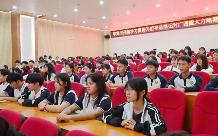 3月27日,平果市學(xué)習(xí)貫徹習(xí)近平總書記對廣西重大方略要求專題宣講(平果市大學(xué)園區(qū)專場)在廣西工程職業(yè)學(xué)院圖文信息大樓報(bào)告廳舉行,平果市大學(xué)園區(qū)管理服務(wù)中心組織園區(qū)干部職工及園區(qū)內(nèi)3所高職院校師生代表300人到場學(xué)習(xí)。
