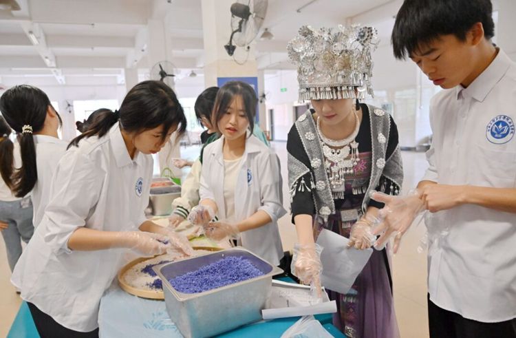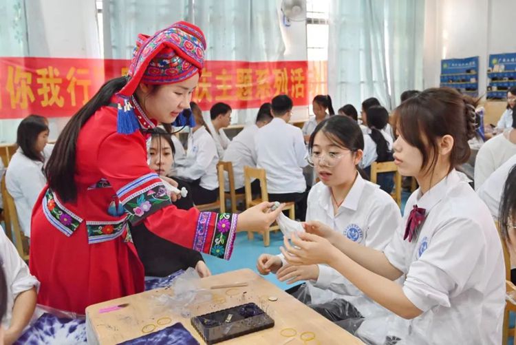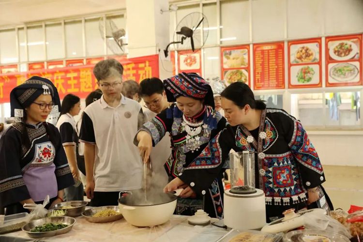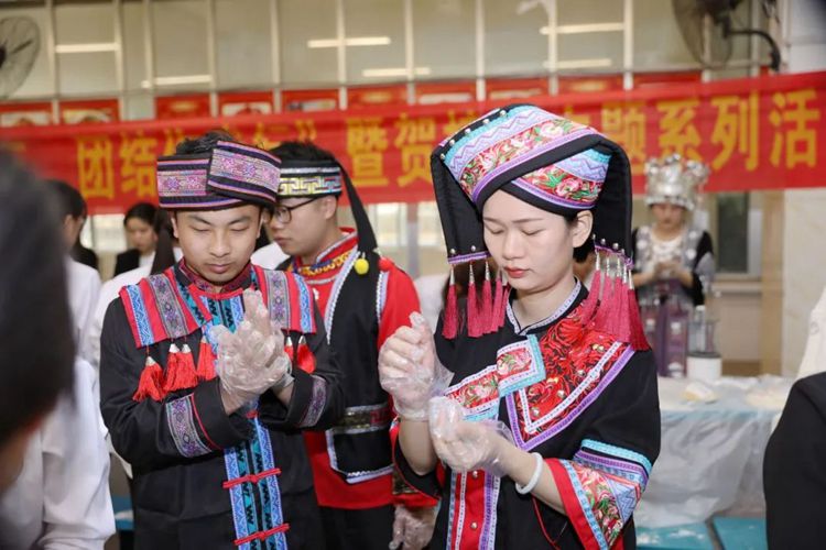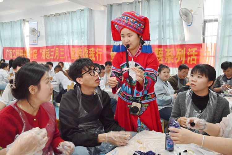 本次“廣西三月三”系列活動以“潮起三月三,團結(jié)你我行”為主題,開展有“扎染制作”“廣西特色美食(糯米飯、艾葉糍粑、油茶)制作”“‘廣西三月三’微黨課”“蓮鼓越歌行舞蹈”“跳竹竿舞”“山歌對唱”等6項獨具魅力的活動。