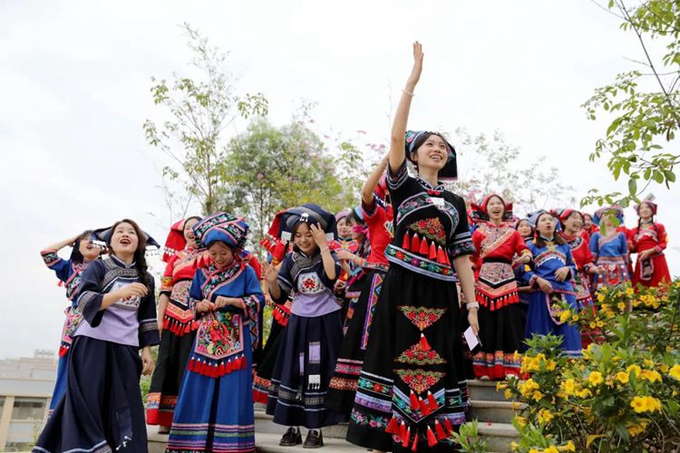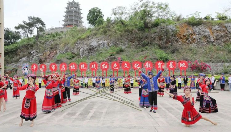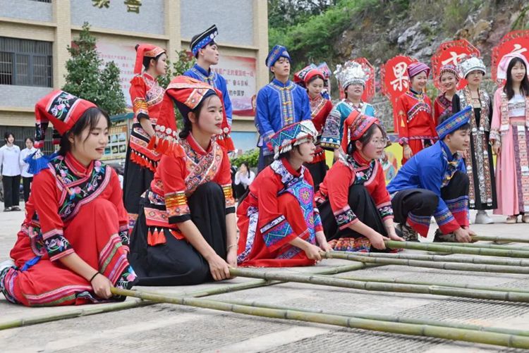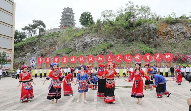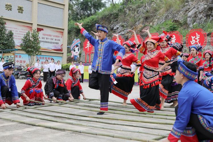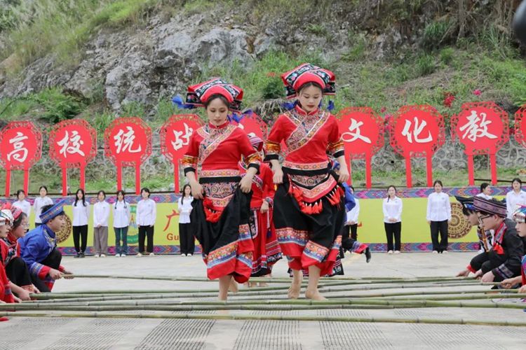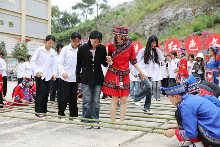 竿竿舞民族旋律,步步現(xiàn)團結(jié)情懷。4月9日,同學(xué)們身著民族服裝,相聚在統(tǒng)戰(zhàn)紅色文化教育基地,歡快跳起了竹竿舞。紀委書記、副校長彭高彬等校領(lǐng)導(dǎo)到現(xiàn)場與師生一起共慶三月三。