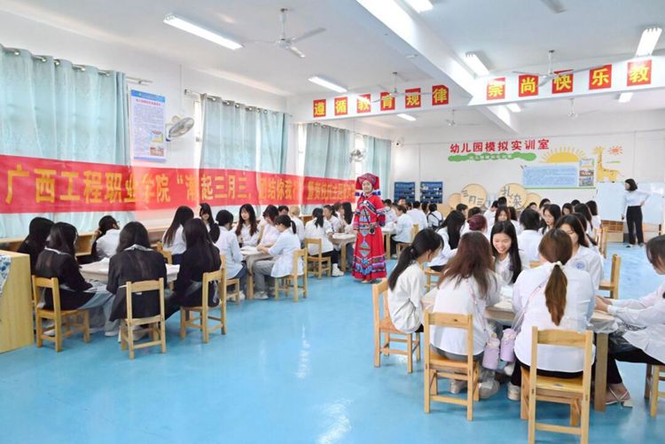 為引領(lǐng)廣大師生鑄牢中華民族共同體意識,弘揚優(yōu)秀民族文化,凝聚各民族情誼,營造民族團結(jié)進步的校園氛圍,豐富校園文化生活,4月8日至9日,廣西工程職業(yè)學(xué)院開展“廣西三月三”系列活動,活動由教育學(xué)院、藝術(shù)設(shè)計學(xué)院承辦。