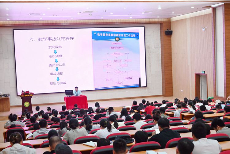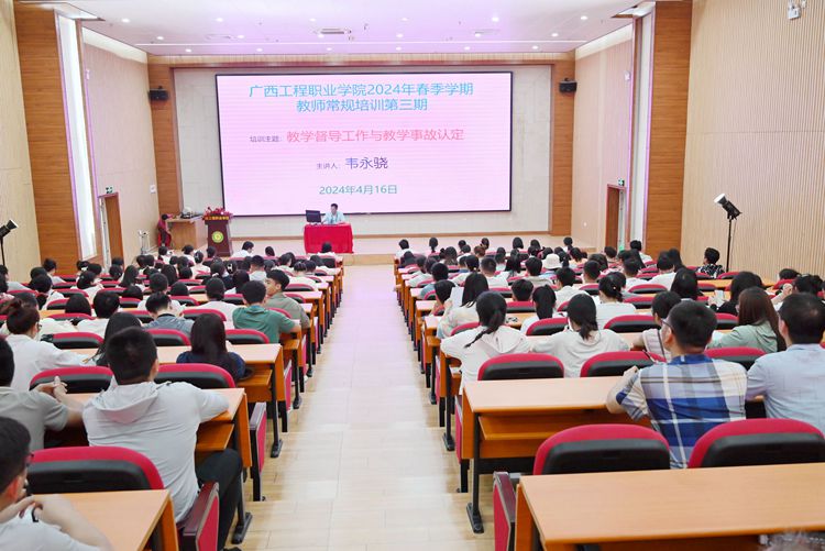 為進(jìn)一步加強(qiáng)教風(fēng)建設(shè),規(guī)范課堂教學(xué)秩序,提升教師業(yè)務(wù)素養(yǎng),提高課堂教學(xué)效益,4月16日,學(xué)校在圖文信息大樓一樓學(xué)術(shù)報(bào)告廳開展2024年春季學(xué)期第三期教師常規(guī)培訓(xùn)。教學(xué)督導(dǎo)室主任韋永驍副教授作教學(xué)督導(dǎo)工作及教學(xué)事故認(rèn)定專題培訓(xùn),全體教職工參加培訓(xùn)。