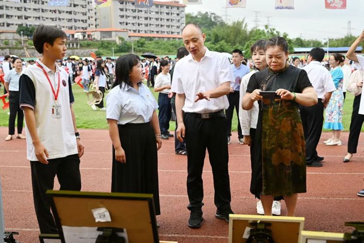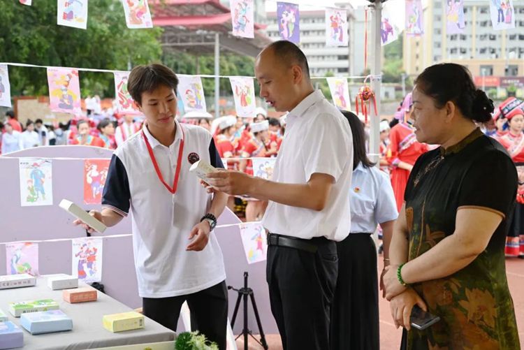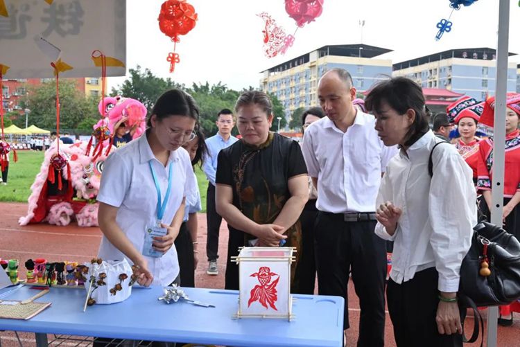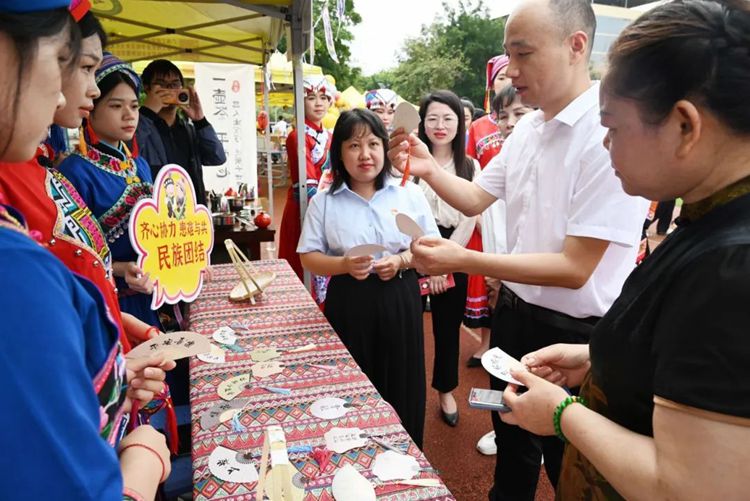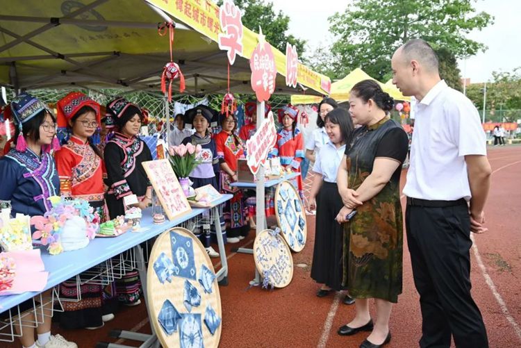 啟動儀式后,出席啟動儀式的領(lǐng)導(dǎo)嘉賓來到學(xué)校民族特色活動區(qū),現(xiàn)場參觀民族特色活動,進(jìn)一步感受學(xué)校開展鑄牢中華民族共同體意識教育的生動實踐和取得的成果。