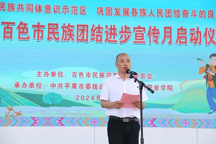 陳玉榮調(diào)研員最后宣布2024年百色市民族團(tuán)結(jié)進(jìn)步宣傳月啟動。