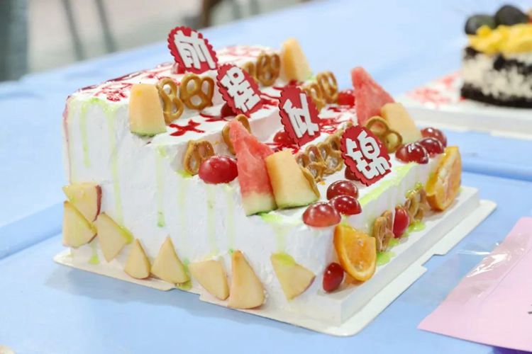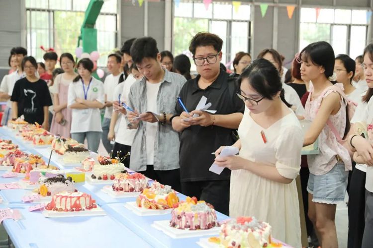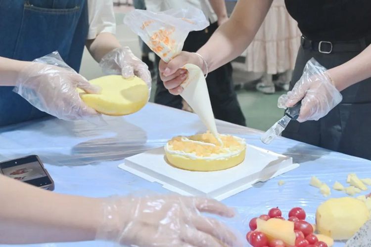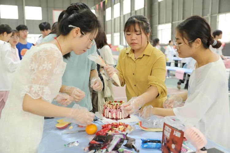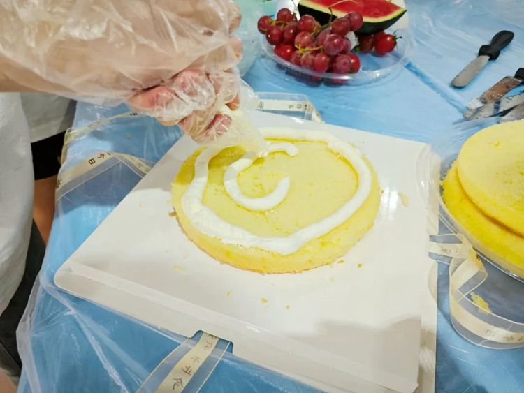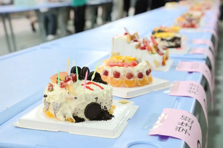 比賽中,大家紛紛在蛋糕添上校慶元素,表達(dá)對(duì)學(xué)校的美好祝福