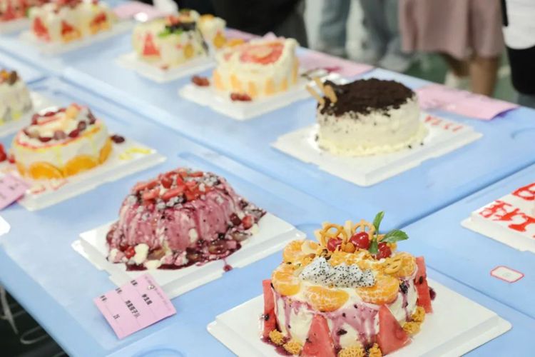 每個(gè)蛋糕都造型別致,色彩搭配和諧,充分展現(xiàn)了師生的獨(dú)特創(chuàng)意和嫻熟的糕點(diǎn)DIY技藝,他們用不一樣的禮物為17周年校慶增添幸福色彩和甜蜜味道。