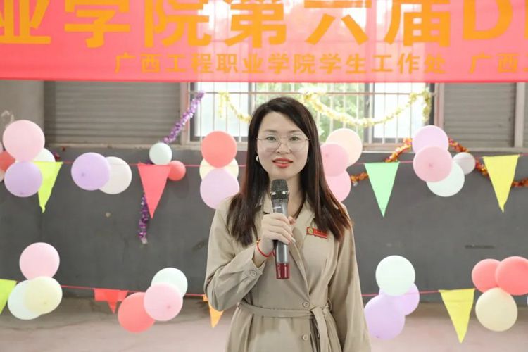 學(xué)生工作處副處長李麗詩致辭。她表示,4月20日是廣西工程職業(yè)學(xué)院建校17周年校慶,在這個(gè)特殊的時(shí)刻,我們?nèi)w師生聚集在一起,親自為學(xué)校的17歲生日制作精美蛋糕,為學(xué)校的生日送上最美好的祝福,共同分享學(xué)校建校17年來甜蜜的辦學(xué)成果。