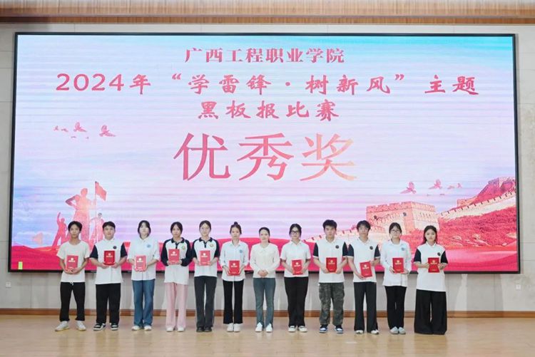 藝術(shù)設(shè)計學(xué)院分團(tuán)委書記謝彩英為獲得2024年“學(xué)雷鋒·樹新風(fēng)”主題黑板報比賽優(yōu)秀獎的代表頒獎