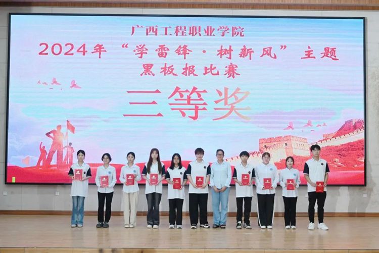 汽車與機(jī)電學(xué)院分團(tuán)委書記楊小櫻為獲得2024年“學(xué)雷鋒·樹新風(fēng)”主題黑板報比賽三等獎的代表頒獎