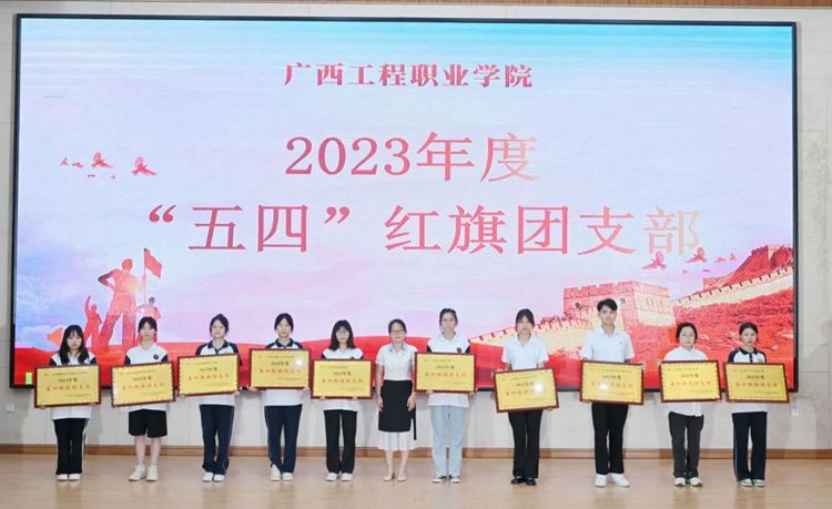 學(xué)生工作處副處長李麗詩為獲得2023年度“五四”紅旗團(tuán)支部榮譽(yù)稱號的集體頒獎