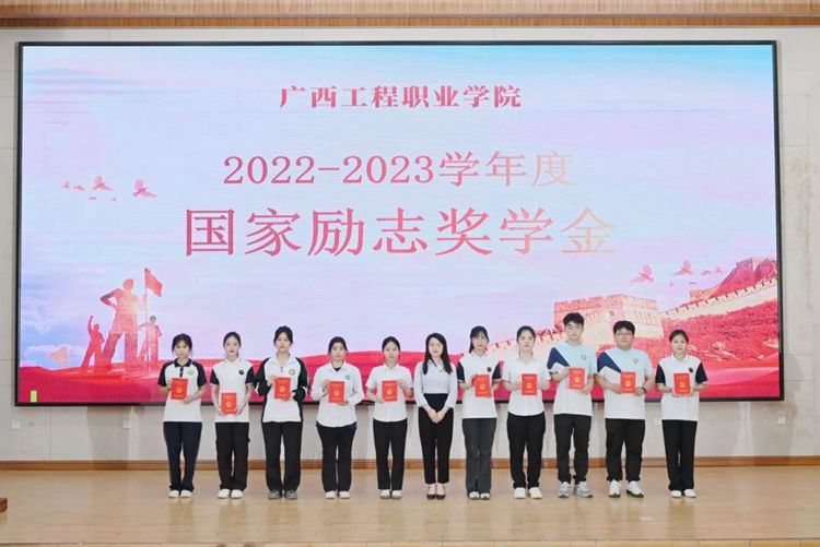 黨委副書記黃秋霞為獲得2022-2023學(xué)年度國家勵志獎學(xué)金的學(xué)生代表頒獎