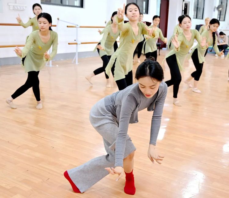 課堂上,黃雯靖老師詳細講解古典舞的基本動作、技巧和表現(xiàn)形式等內(nèi)容,并親身示范,以培養(yǎng)學生肢體動作的協(xié)調(diào)性和對音樂節(jié)奏的感知能力,提升她們的審美藝術(shù)和表演能力。