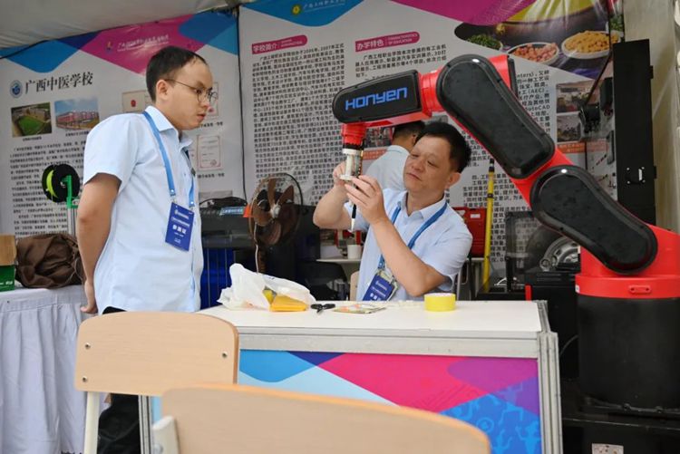 活動共設有146個展位,其中,我校展位吸引了眾多與會領導、嘉賓以及現(xiàn)場觀眾駐足觀看、咨詢和體驗,大家對我校在職業(yè)教育方面取得的成果給予了高度評價。我校將繼續(xù)加大改革創(chuàng)新力度,進一步提高職業(yè)教育質(zhì)量,為廣西乃至全國的職業(yè)教育事業(yè)發(fā)展貢獻更多力量。