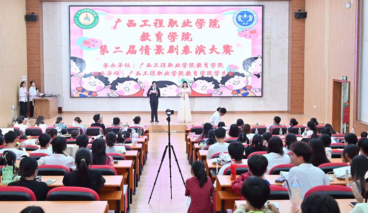 5月16日,廣西工程職業(yè)學(xué)院教育學(xué)院在圖文信息大樓一樓學(xué)術(shù)報告廳舉行2022級學(xué)前教育專業(yè)情景劇表演。