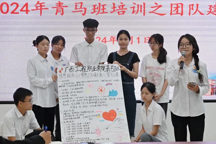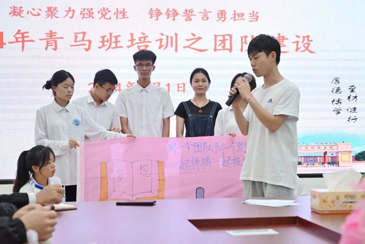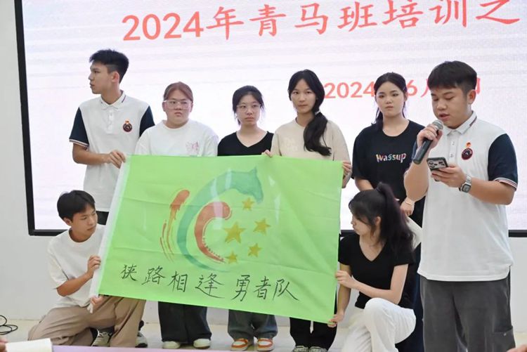 在團(tuán)隊(duì)建設(shè)活動(dòng)中,青馬班學(xué)員們以10名同學(xué)為一小組,互不認(rèn)識(shí)的小組成員迅速行動(dòng)起來(lái),推選小組長(zhǎng),并團(tuán)結(jié)協(xié)作,集思廣益,短時(shí)間內(nèi)就想好了小組的隊(duì)名、隊(duì)歌、團(tuán)隊(duì)口號(hào)等。在小組展示的過(guò)程中,各個(gè)小組發(fā)揮自身優(yōu)勢(shì),展示了別具特色的團(tuán)隊(duì)文化。