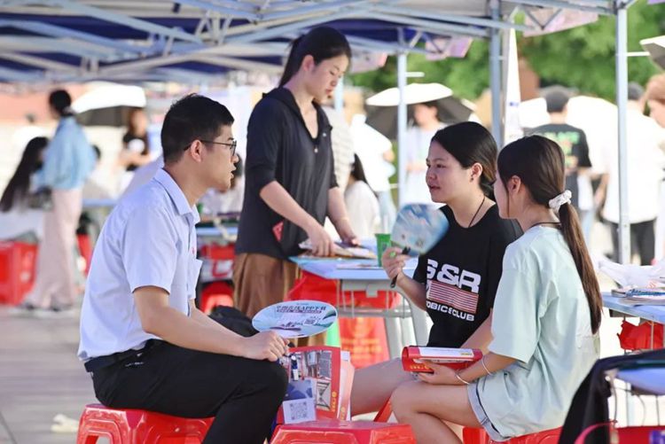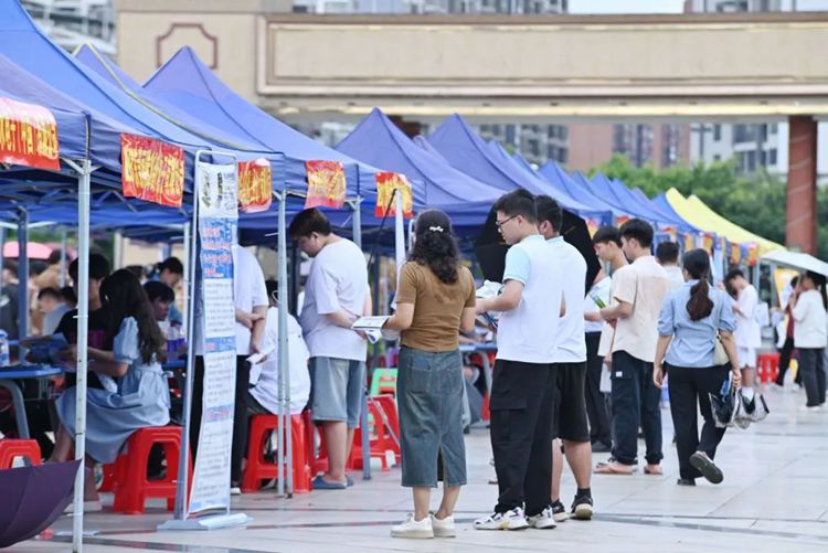 在雙選會現(xiàn)場,氣氛熱烈非凡。各個行業(yè)的將近兩百家企業(yè)匯聚于此,展示了包括金融、教育、科技等在內(nèi)的多個領域,總共有數(shù)千個工作職位等待畢業(yè)生選擇。