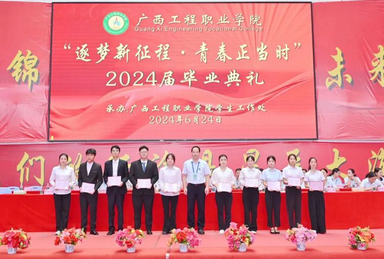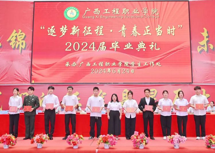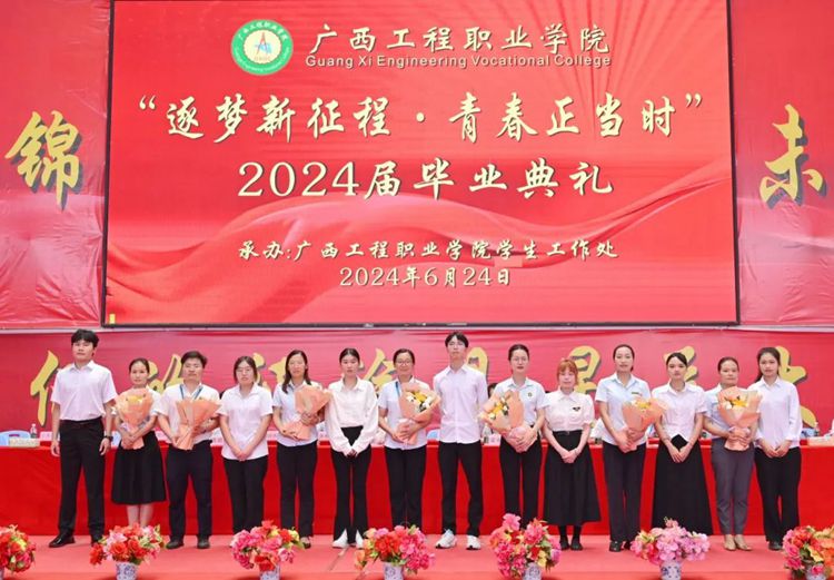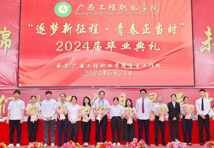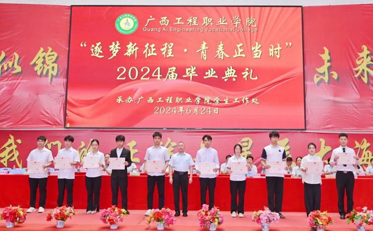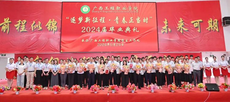 2024年6月24日,廣西工程職業(yè)學院“逐夢新征程 青春正當時”2024屆畢業(yè)典禮在體育館舉行。學校黨政領導班子出席畢業(yè)典禮,各部門負責人、科長、畢業(yè)班專任教師、全體輔導員及2024屆畢業(yè)生參加畢業(yè)典禮。學校黨委副書記黃秋霞主持畢業(yè)典禮。