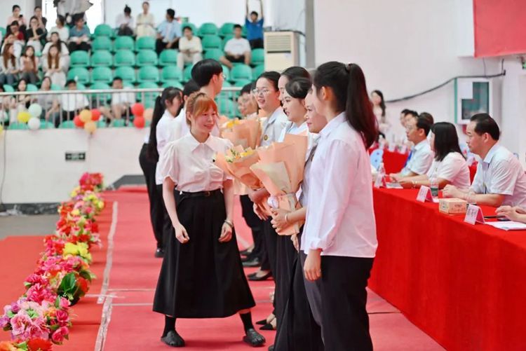 黨委副書記、校長羅艷妮致辭。她向圓滿完成學習任務的2024屆畢業(yè)生表示衷心地祝賀! 向多年來為同學們健康成長付出辛勤勞動的教職工表示衷心的感謝!向關注學校發(fā)展、關愛同學們成長的家長們表示誠摯的問候和深深的謝意!