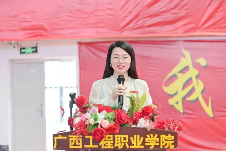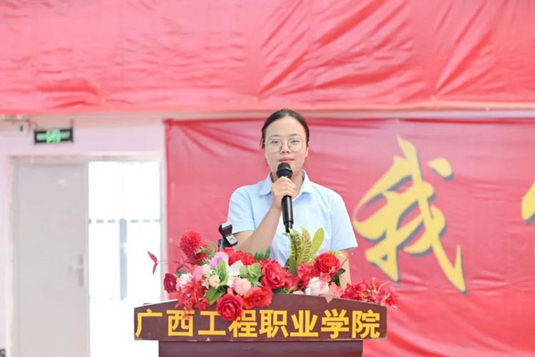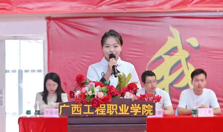 在校生代表教育學院黃敏同學發(fā)言,她表示身為廣西工程職業(yè)學院的在校學子,將以學長學姐為榜樣,刻苦學習,腳踏實地,努力鉆研,勤于實踐,勇于創(chuàng)新,學會做事,學會做人,用我們的青春和智慧續(xù)寫輝煌的篇章。