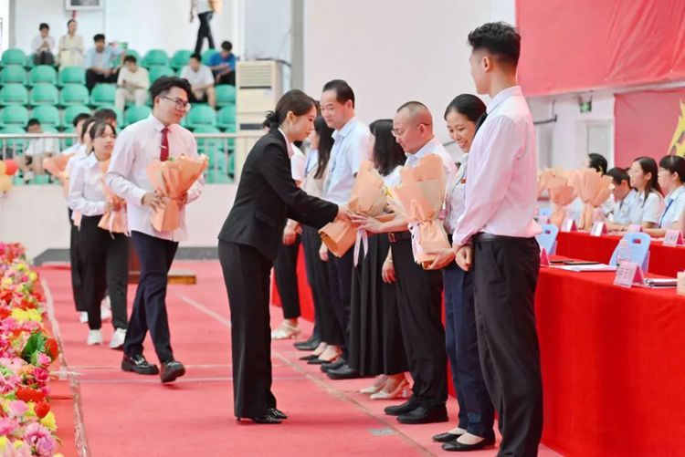 畢業(yè)生代表向學校領導、老師獻上感恩的花束