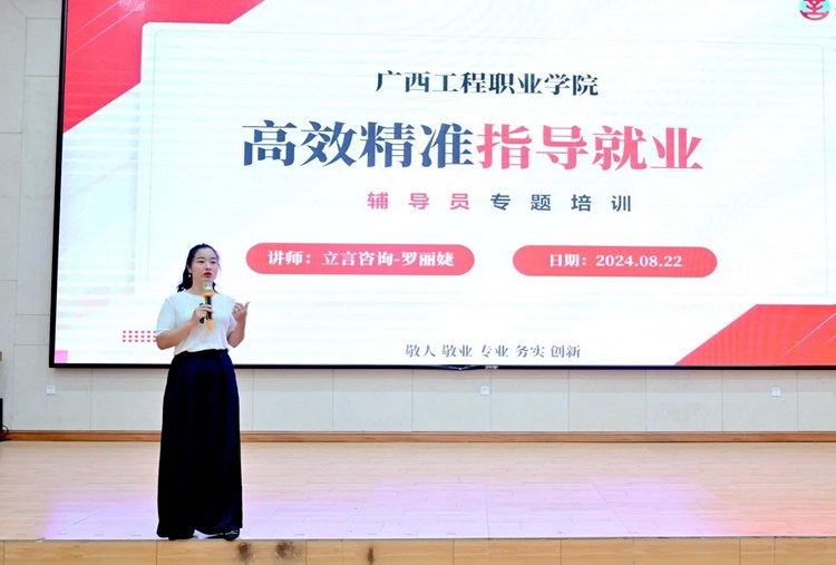為進一步提高學(xué)校就業(yè)指導(dǎo)與服務(wù)質(zhì)量,更好地服務(wù)廣大學(xué)生,幫助畢業(yè)生找準(zhǔn)個人職業(yè)定位與發(fā)展方向,助推畢業(yè)生更加充分更高質(zhì)量就業(yè),2024年8月22日,學(xué)校特邀廣西立言企業(yè)管理咨詢有限公司創(chuàng)始人羅麗婕女士來校作高校教師高效精準(zhǔn)指導(dǎo)就業(yè)專題培訓(xùn),全體教職工參加培訓(xùn),培訓(xùn)會由紀(jì)委書記、副校長彭高彬主持。