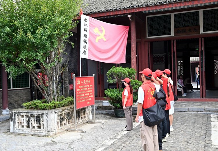 在右江革命紀念館——經(jīng)正書院,全體實踐團、服務(wù)團成員懷著對先烈的崇敬之情,認真觀看了館藏歷史圖片、史料及革命文物,進一步了解了中國革命道路的艱難探索、百色起義的歷史背景、老一輩無產(chǎn)階級革命家艱苦卓絕的戰(zhàn)斗經(jīng)過、百色土地革命運動發(fā)展等黨帶領(lǐng)全國人民走向勝利的光輝歷程。大家跟隨講解員一起聆聽?wèi)?zhàn)斗故事,重溫崢嶸歲月,深切感受著革命先烈為革命事業(yè)不畏艱難、犧牲一切的偉大品格。